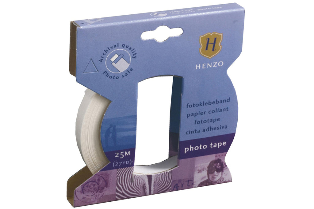 Henzo fototape består af en rulle med 25 meter dobbeltklæbende tape, perfekt til at fastgøre værdifulde fotos. Fordi det er på en rulle, kan fotos fastgøres hurtigt og sikkert. Tapen er syrefri, så den beskadiger ikke fotos. Klip blot tapen til den ønskede længde, sæt den på bagsiden af fotoet, og brug derefter den praktiske negleclips til at fjerne beskyttelsesstrimlen og sæt fotoet fast i albummet.