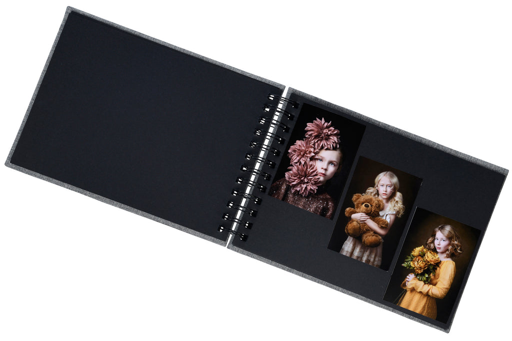 Focus Essence Wire-O er et spiralalbum med 20 sorte sider i 21x16cm. Siderne er fremstillet i syrefri karton, som sikrer at dine billeder er beskyttet i generationer. Billederne skal monteres med lim, fotohjørner eller photostickers, hvilket giver mulighed for fuld kreativitet, samt montering af billeder i forskellige størrelser.