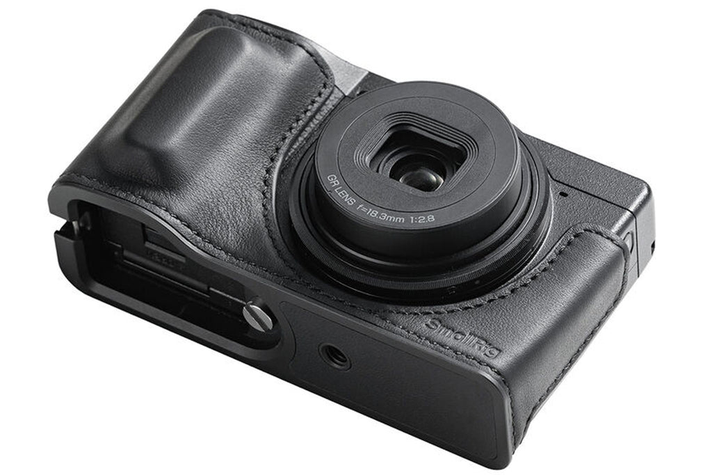 Beskyt dit Ricoh GR IV i dette stilfulde og funktionelle læderetui med håndledsrem fra SmallRig. Med et klassisk retrodesign giver det et behageligt, ergonomisk greb og bevarer adgang til alle kameraets knapper og batteriet. Det er kompatibelt med alle Ricoh-objektivdæksler og har et 1/4"-20 gevind til fastgørelse af stativ eller monopod.