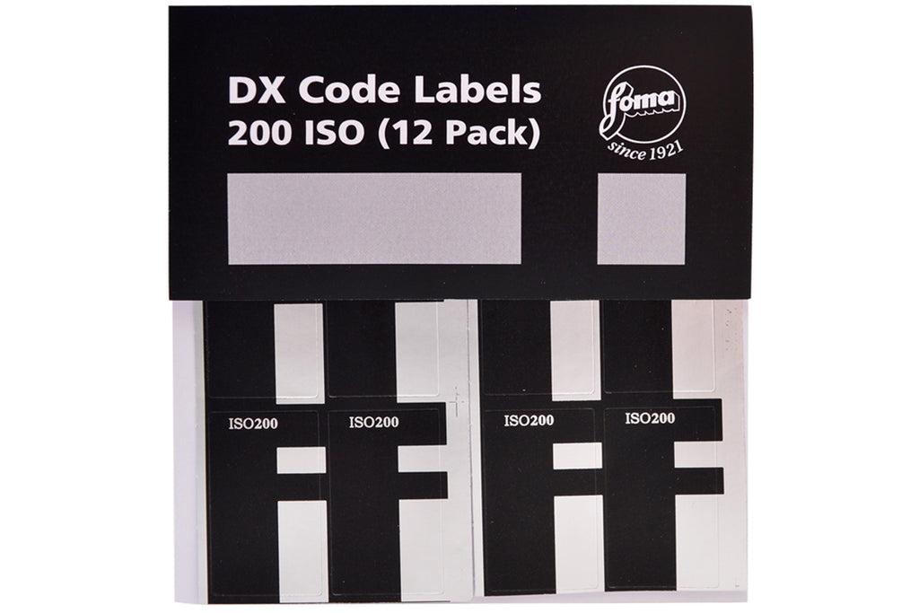 Denne pakke indeholder 12 selvklæbende labels med ISO 200 DX codes til 35mm film.